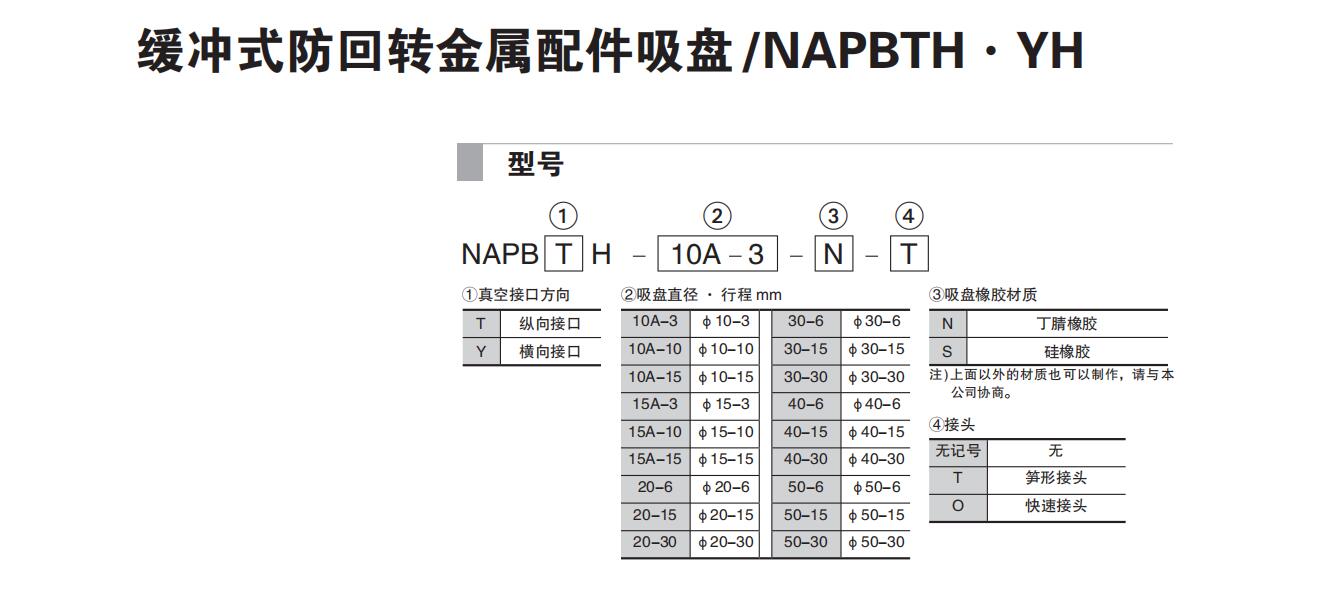 妙德真空吸盤緩沖式防回轉(zhuǎn)金屬配件NAPBTH·YH