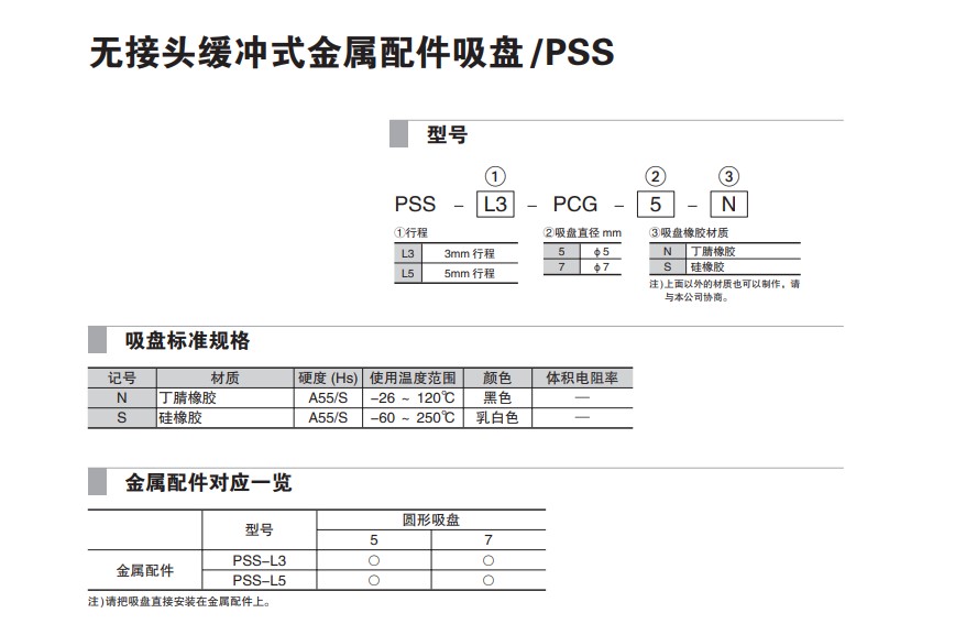 無(wú)接頭緩沖式金屬配件吸盤 PSS