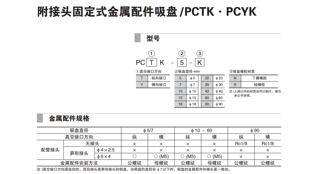 妙德真空吸盤附接頭固定式金屬配件PCTK·PCYK