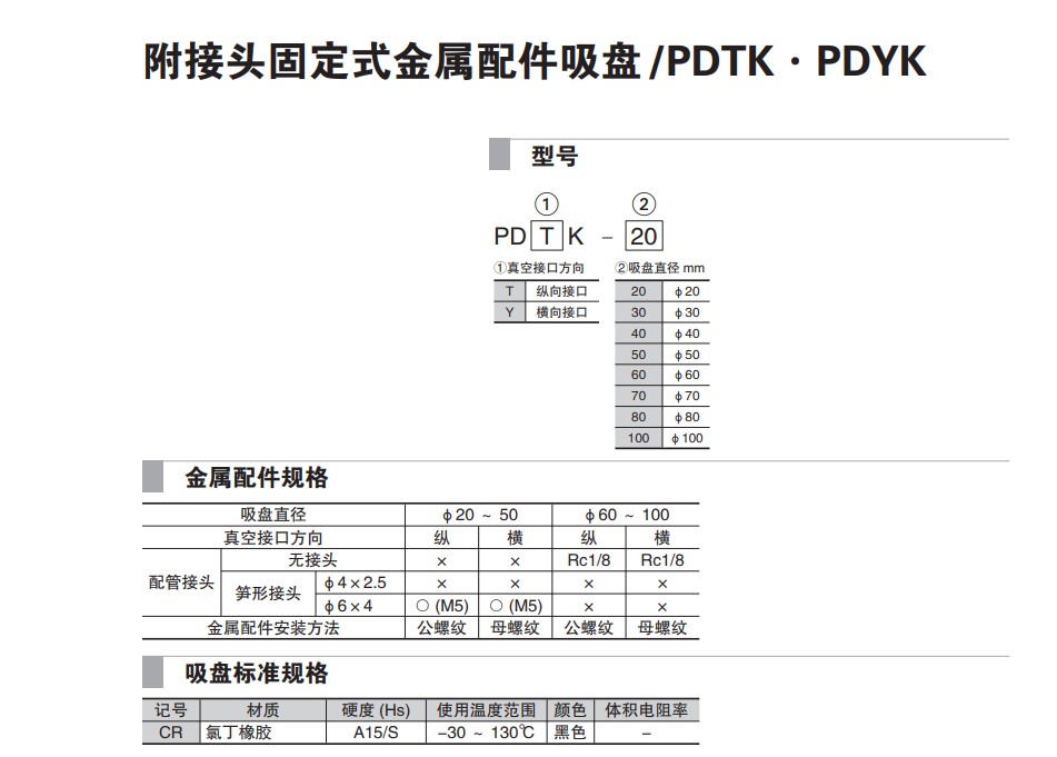 附接頭固定式金屬配件吸盤 PDTK·PDYK