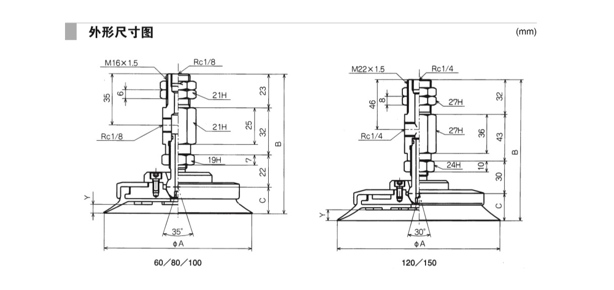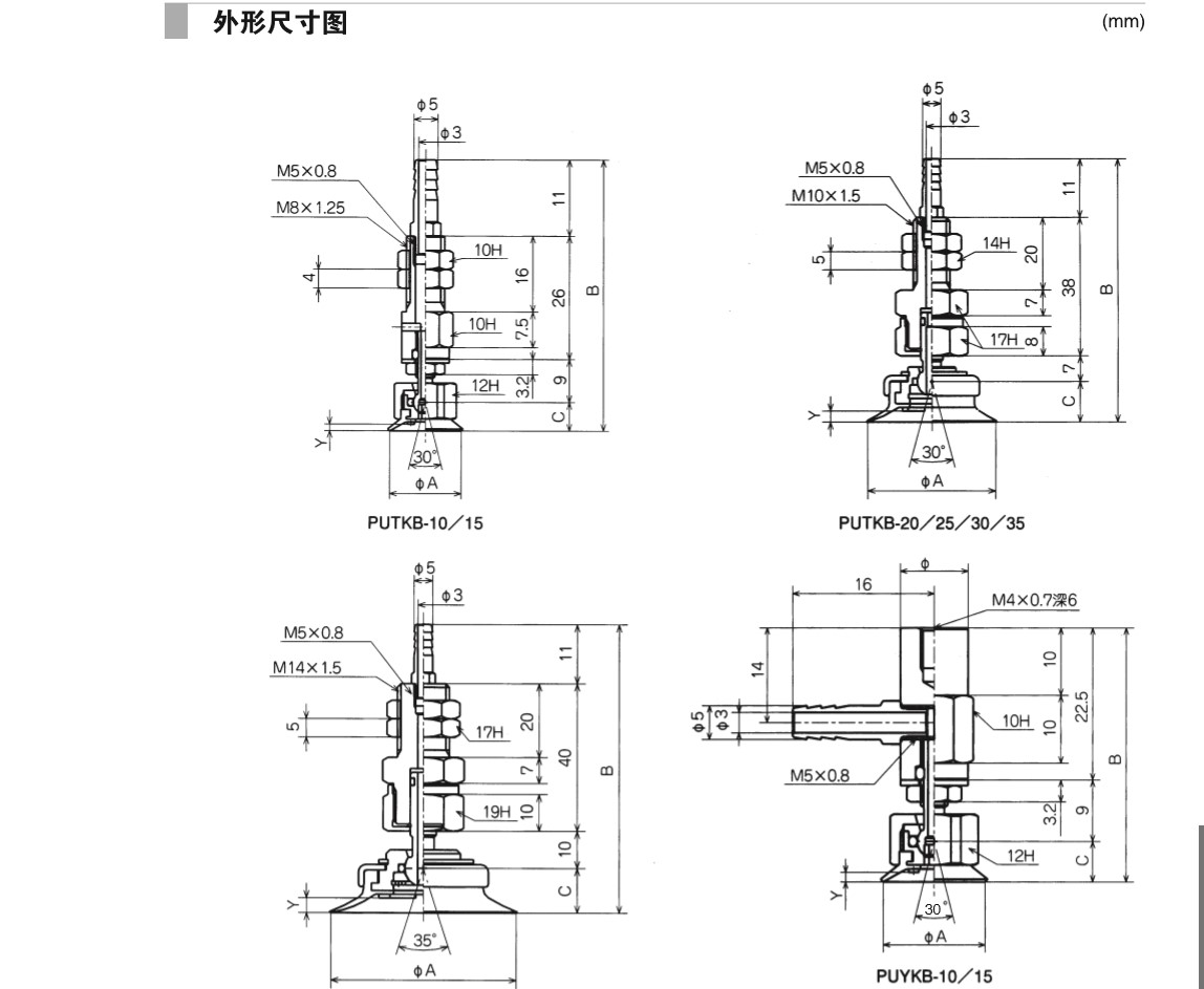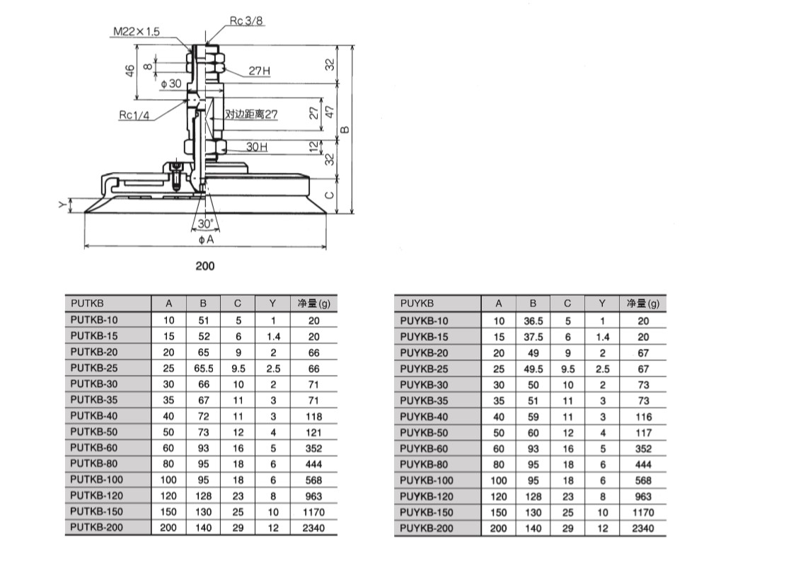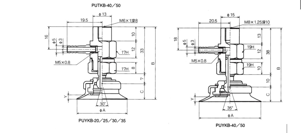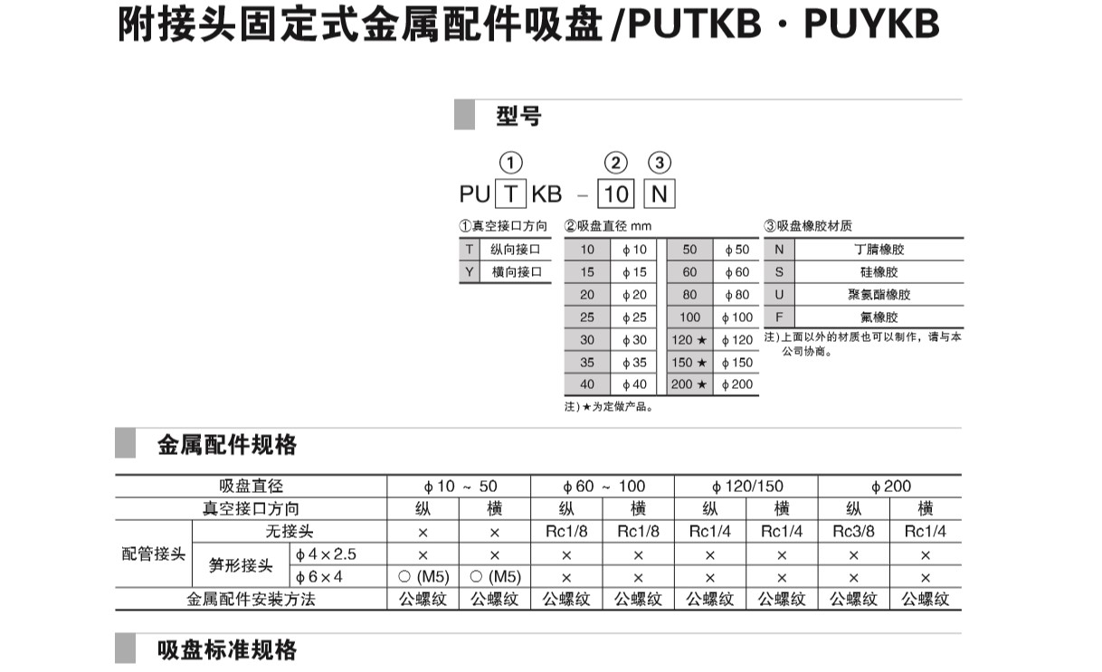 附接頭固定式金屬配件吸盤 PUTKB·PUYKB